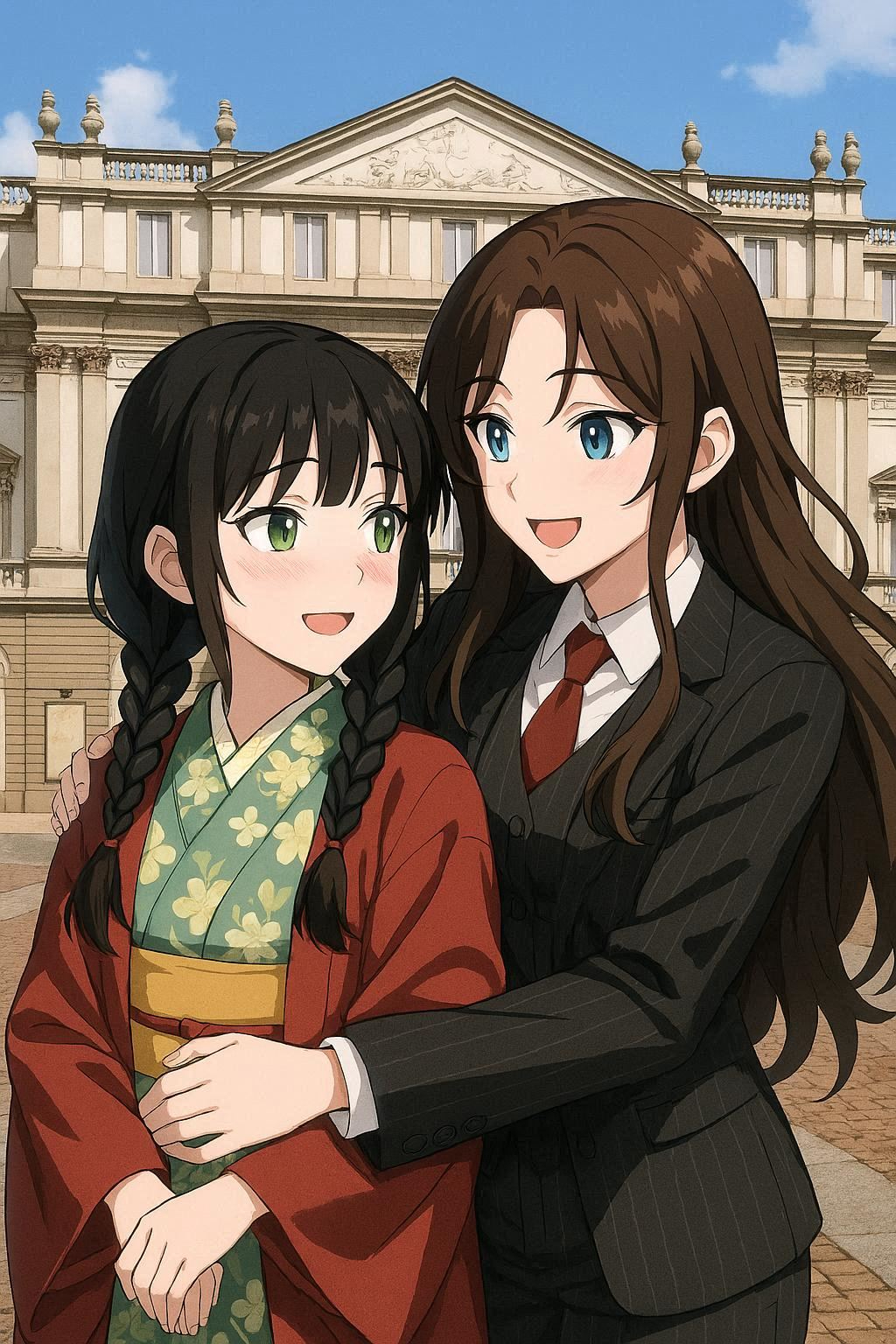 - おはようございます 今日もよろしくお願いします ミラノ・コルティナ五輪観戦の為、ミラノに到着した御二人達😸 開会式までミラノ市内を観光しています 御二人はスカラ座前でデート中💞 猫ちゃんズはレストランでお食事中 ミケちゃん🐈「ミラノ風カツレツとミラノ風リゾット、旨い😋」ガツガツ アキナちゃん🐈⬛「エスプレッソコーヒーも美味しいです☕」 バンちゃん💛「イタリアンワインも最高だね🍷」 #AIイラスト