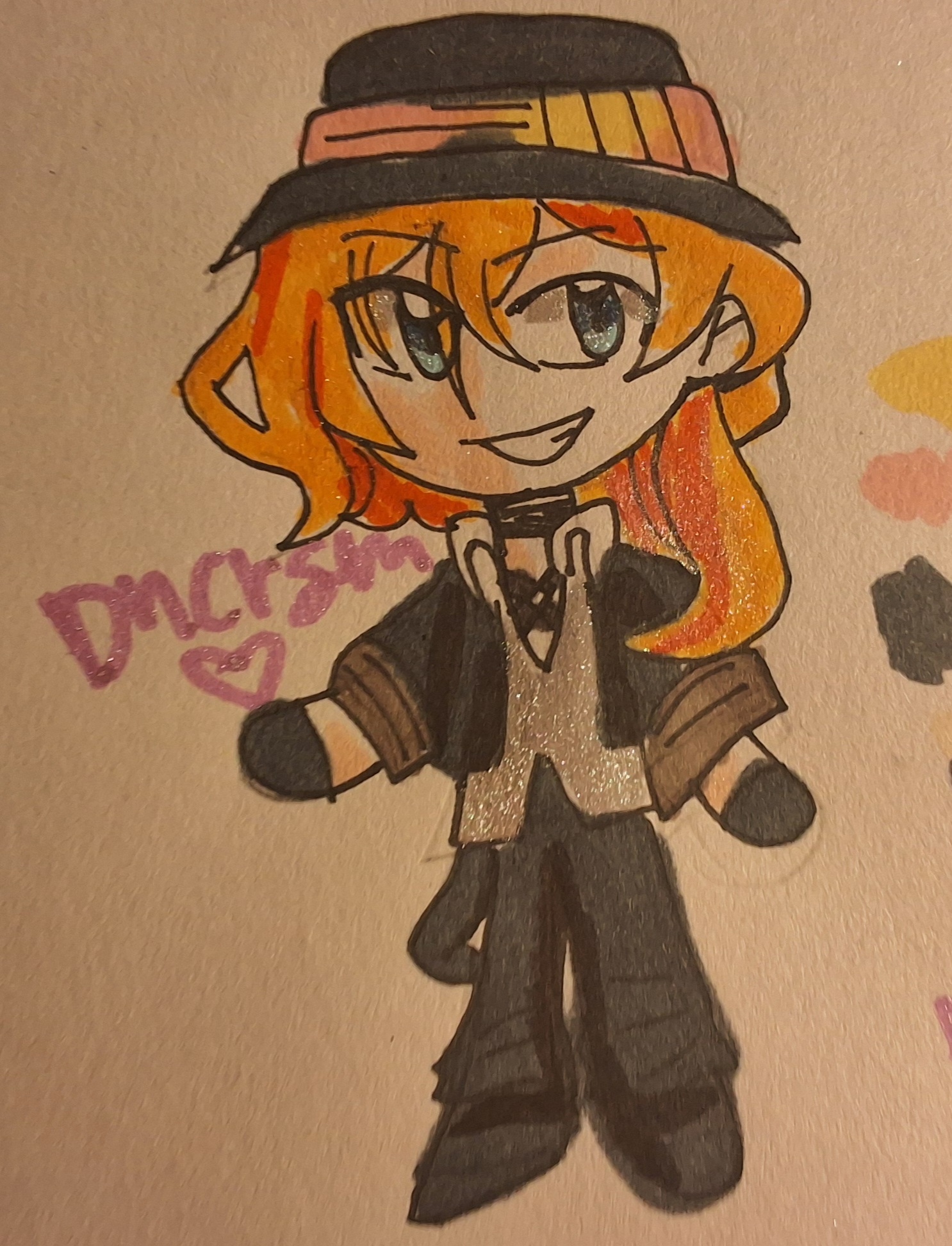 - drew Chuuya & fem one #chuuya #chuuyanakahara #chuuyabsd #bsd #bsd #bungostraydogs #traditionalart #marker #markerart #art #fanart #anime #glittermarkers