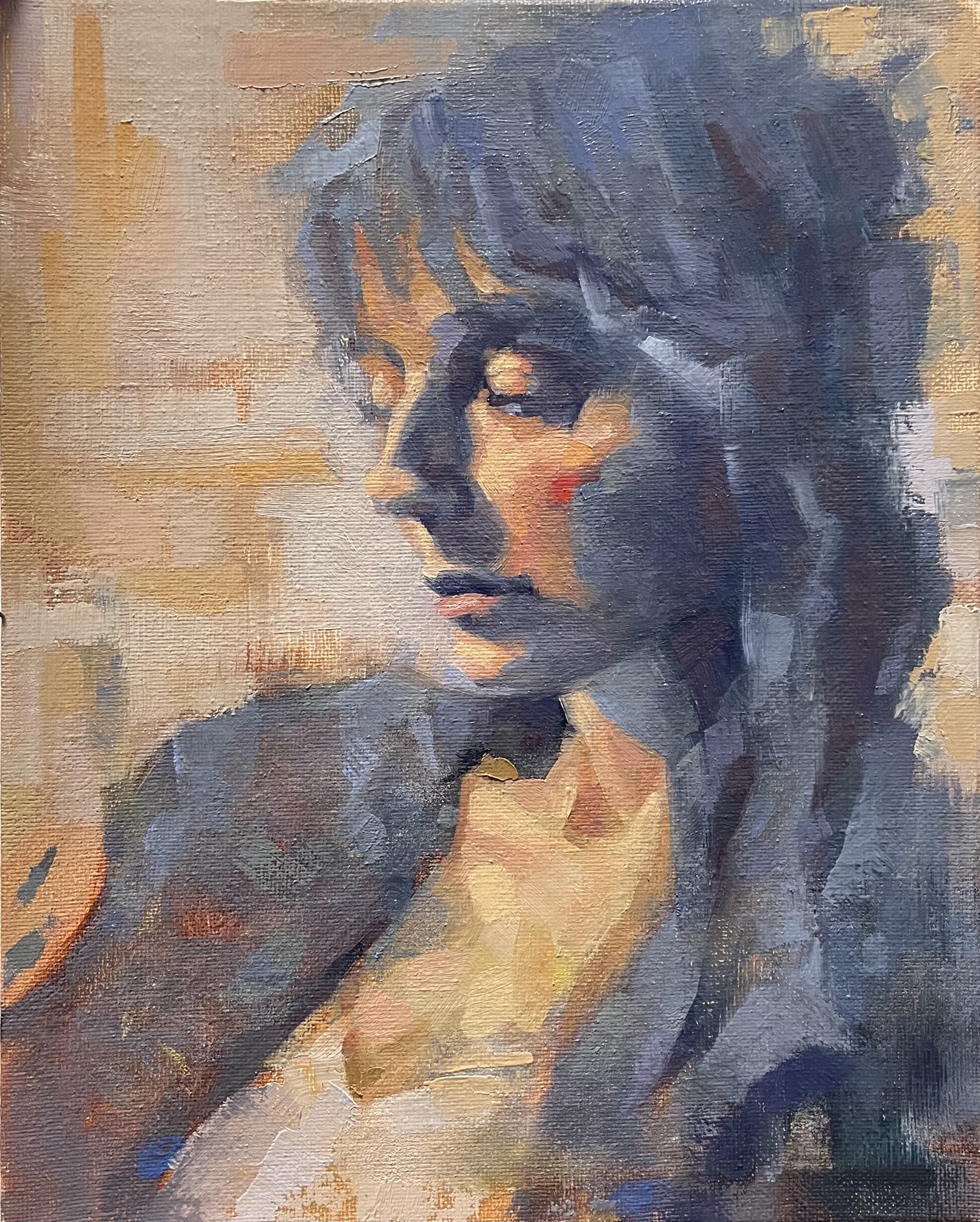 - On the easel today. Experimenting with my mark making. #oilpainting #wip #portrait #traditionalart #painting #art