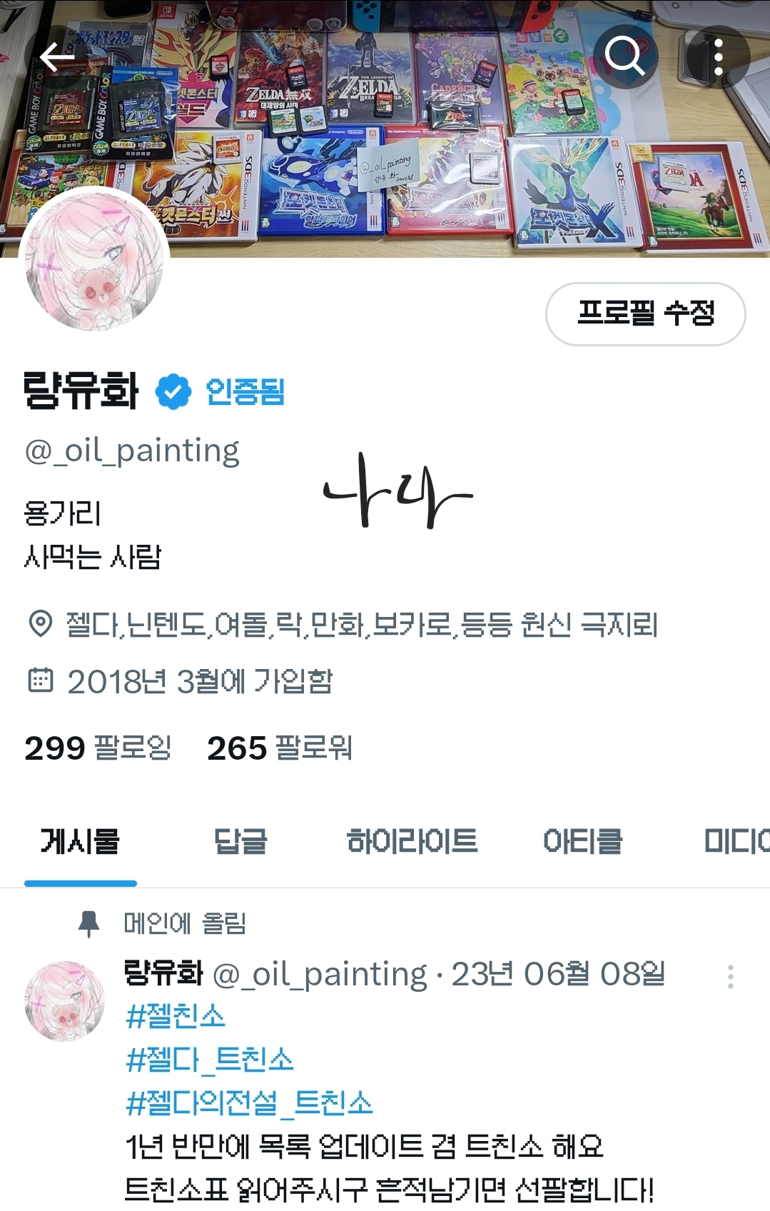 접니다 량유화 트위ㅌ의몰락을지켜보다가 만듬 트친분들맞팔주세여plz @_oil_painting
